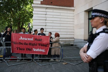 LONDON (Reuters) -Former Arsenal midfielder Thomas Partey appeared in a London court on Tuesday, charged with raping two women while he was a player for the English Premier League soccer club.