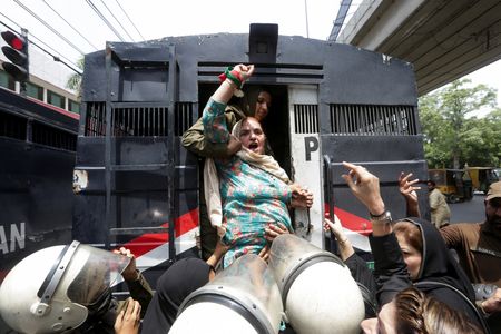 LAHORE, Pakistan (Reuters) -Police in Pakistan arrested more than 240 opposition party activists on Tuesday at protests calling for the release of their leader Imran Khan on the second anniversary of his jailing, security officials and police said.