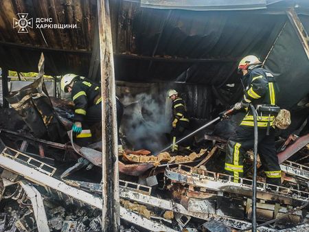 LOZOVA, Ukraine (Reuters) -Russia carried out its largest attack on Lozova, a railway hub east of Ukraine, on Tuesday, with dozens of drone strikes that left two people dead and wounded 13 others, including two children, Ukrainian officials said.
