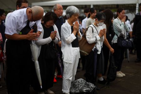 NAGASAKI (Reuters) -Thousands bowed their heads in prayer in Nagasaki on Saturday to mark the 80th anniversary of the city’s atomic bombing, as the mayor warned that current global conflicts could push the world again into nuclear war.