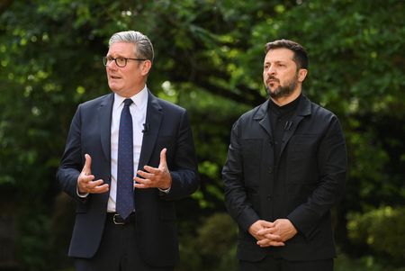 KYIV (Reuters) -Ukrainian President Volodymyr Zelenskiy said on Saturday that he spoke with British Prime Minister Keir Starmer, adding that they shared the same view on the danger of Russia’s plan “to reduce everything to discussing the impossible”.