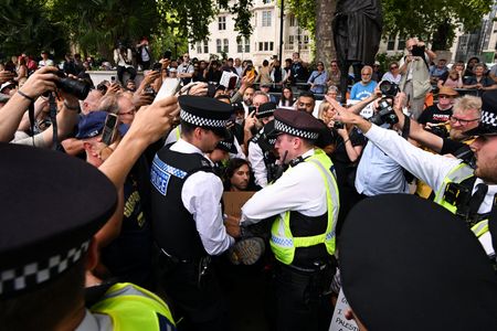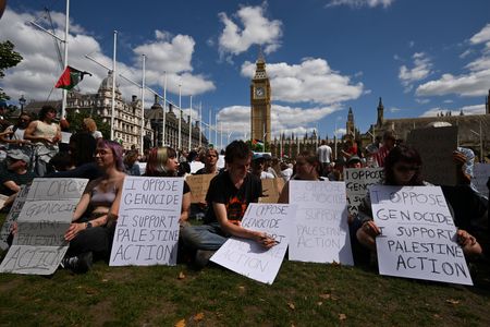 LONDON (Reuters) -London’s Metropolitan Police arrested more than 466 people at a protest on Saturday against Britain’s decision to ban the group Palestine Action, the force said.
