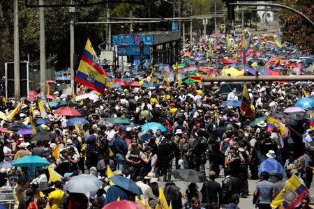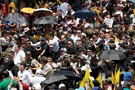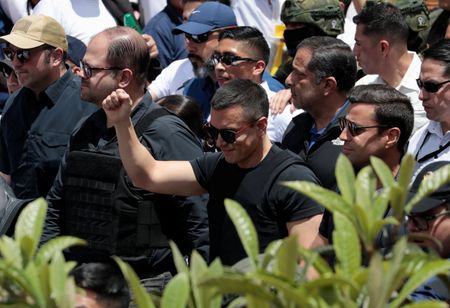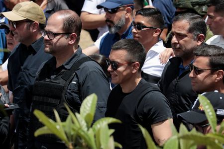 QUITO (Reuters) -Ecuadorean President Daniel Noboa on Tuesday led a march against a decision by the constitutional court to temporarily suspend provisions in recently passed security laws, in what critics say is an attempt to curtail judicial independence.