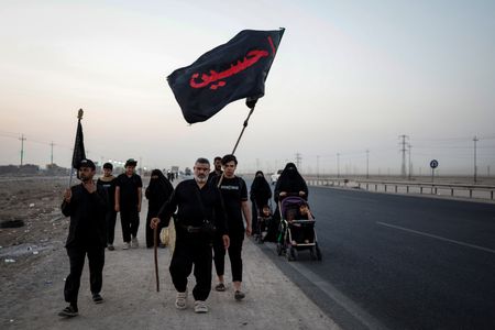KARBALA, Iraq (Reuters) -Majid al-Kareem is poorly equipped for his 500 km pilgrimage by foot through the scorching deserts of southern Iraq. He wears sandals and black clothes that absorb the heat, and carries a wooden broom handle for a walking stick.