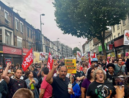 He had made the remarks to a crowd gathered near an immigration advice centre in London after reports that far-right supporters were planning a protest.