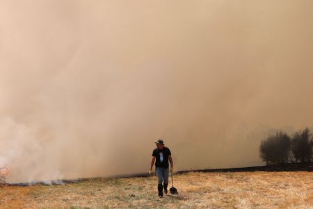 VILLANUEVA DE LA SIERRA, Spain (Reuters) -Spain battled 14 major fires driven by high winds and aggravated by heat on Friday as authorities warned of “unfavourable conditions” to tackle flames that have already killed seven people and burned an area the size of London.