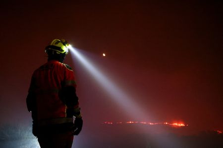 VILLARDEVÓS (Reuters) -Scorching heat hampered efforts to contain 20 major wildfires across Spain on Sunday, prompting the government to deploy an additional 500 troops from the military emergency unit to support firefighting operations.