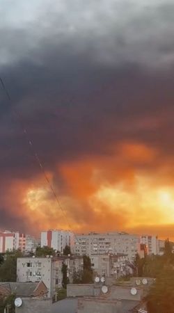 Local media and Kremenchuk’s mayor published videos of city neighbourhoods against a smoke-filled sky.