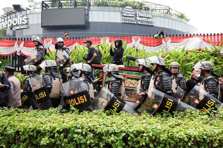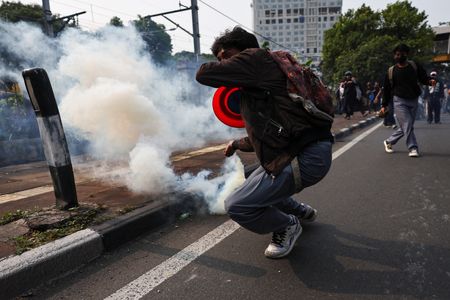 JAKARTA (Reuters) -Police fired tear gas and used a water cannon to push back hundreds of demonstrators trying to break into Indonesia’s parliament building on Monday to protest against what they called excessive pay and perks for legislators, witnesses said.
