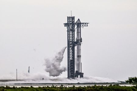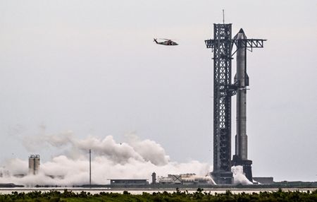 WASHINGTON (Reuters) -Elon Musk’s SpaceX postponed the 10th launch of its Starship rocket due to cloudy weather in Texas on Monday, another slight delay in its efforts to overcome development setbacks and achieve several long-sought milestones essential to the Mars rocket system’s reusable design.