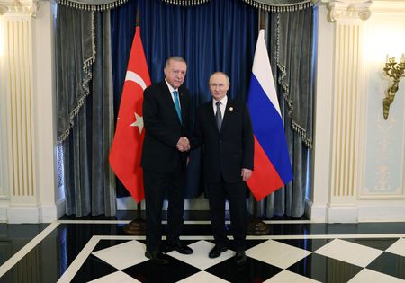 ANKARA (Reuters) -Turkish President Tayyip Erdogan told his Russian counterpart Vladimir Putin on Monday that Ankara was working to find a fair and lasting end to the war in Ukraine and that talks between the parties in Istanbul were contributing to peace efforts, Turkey’s presidency said.