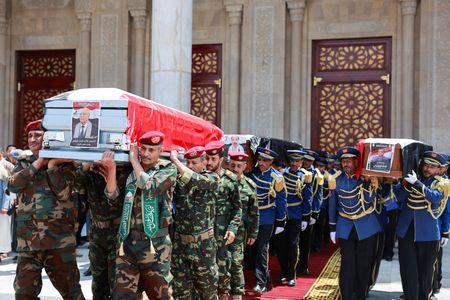 (Reuters) -Thousands of mourners attended a funeral at the largest mosque in Yemen’s capital Sanaa on Monday for 12 senior Houthi figures, including their prime minister, who were killed by an Israeli strike.