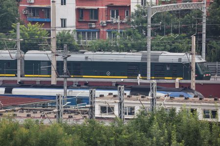 BEIJING (Reuters) -A train marked with a North Korean flag and other visible design features consistent with one that has been used by North Korean leader Kim Jong Un was seen travelling on a railway track in Beijing, Reuters witnesses said on Tuesday.