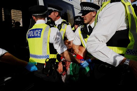 LONDON (Reuters) -British police said on Sunday they had arrested almost 900 people at a demonstration the previous day in support of Palestine Action, and the government appealed for people to stop demonstrating in support of the banned campaign group.