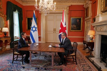 LONDON (Reuters) – Israeli President Isaac Herzog said he had argued with British Prime Minister Keir Starmer in Downing Street on Wednesday during a “tough” meeting that covered deep disagreements over recent behaviour by each other’s country.