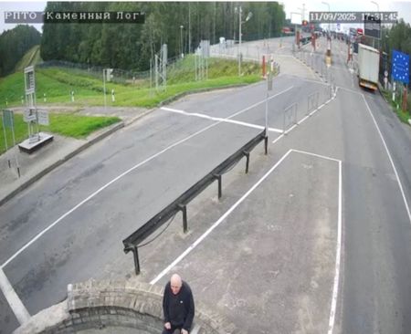 Webcam footage from the border showed Statkevich, dressed in black, sitting on a low wall in the no man’s land between the border posts of the two countries.