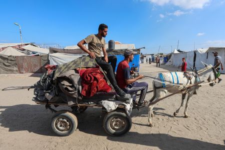 GAZA (Reuters) -Conditions in overcrowded coastal encampments for displaced Palestinians in Gaza are so desperate that some people who fled Israel’s new offensive on famine-struck Gaza City in recent days are heading back towards the falling bombs, they told Reuters.