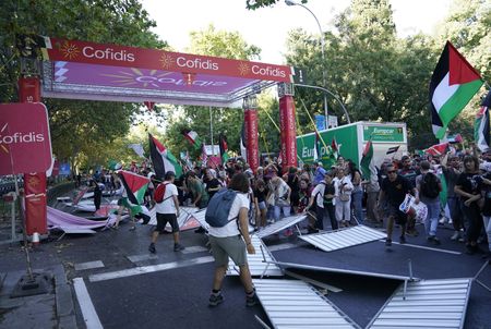 MADRID (Reuters) -Spain’s La Vuelta cycling race was halted in Madrid on Sunday afternoon as cyclists were entering the city after police clashed with pro-Palestinian protesters in the Spanish capital’s centre.