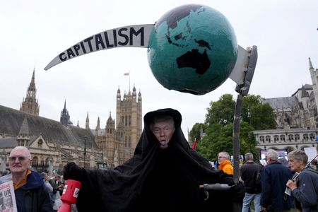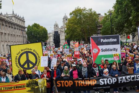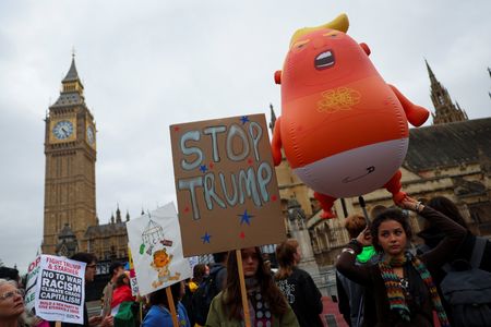 LONDON/WINDSOR (Reuters) -Thousands of people marched through London on Wednesday to protest against U.S. President Donald Trump’s state visit to Britain while a much smaller crowd gathered outside the royal Windsor Castle west of the capital to give him a warm welcome.