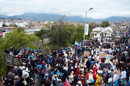 QUITO (Reuters) – Tens of thousands of residents and local leaders in Ecuador’s central Azuay province took to the streets on Tuesday to demand the suspension of a mining project by Canada’s Dundee Precious Metals, which they say will affect a vital water reserve.