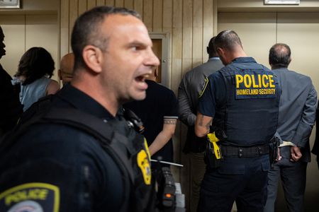 NEW YORK (Reuters) -About a dozen New York state and local elected officials were arrested on Thursday during protests at a Manhattan building where U.S. Immigration and Customs Enforcement agents operate holding cells cited by a federal judge for inhumane conditions.