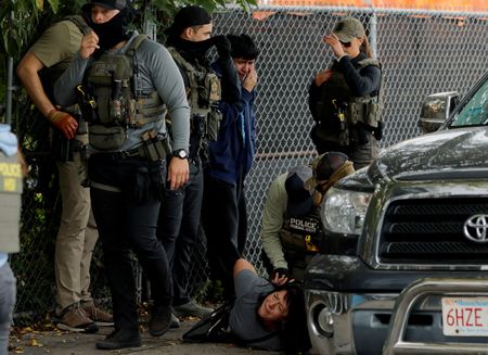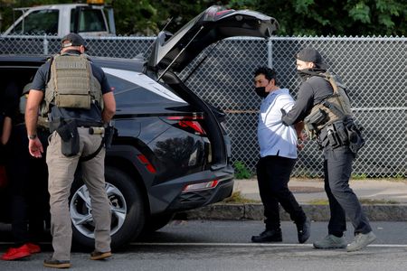 CHELSEA, Massachusetts/BROADVIEW, Illinois (Reuters) -A U.S. immigration officer shoving a woman in a New York City courthouse to the floor. Protesters dispersed with tear gas outside a Chicago detention center.