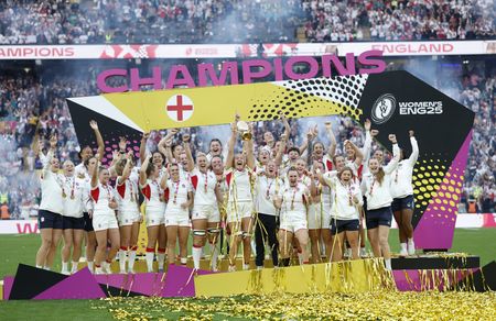 LONDON (Reuters) -England finally delivered when it really mattered on Saturday when they outclassed Canada 33-13 in front of a delirious record 81,885 Twickenham crowd to win the Women’s Rugby World Cup for the third time on a memorable day for the sport.