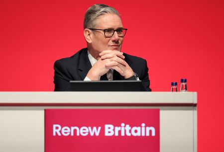 LIVERPOOL, England (Reuters) -British Prime Minister Keir Starmer urged his Labour Party on Sunday to stop “navel gazing” and unite against Reform UK, accusing the rising populist party of planning a “racist policy” of mass deportation if it wins power.