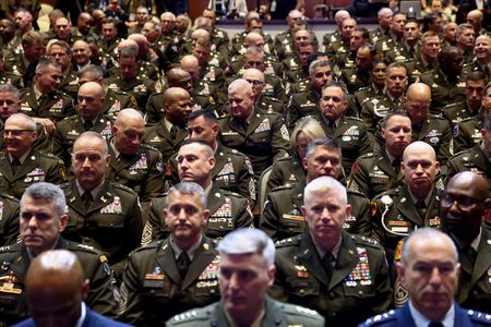 WASHINGTON (Reuters) -U.S. Defense Secretary Pete Hegseth slammed “fat generals” and diversity initiatives that he said led to decades of decay in the military and told a rare gathering of commanders on Tuesday they should resign if they do not support his agenda.