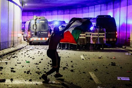 BARCELONA/ROME (Reuters) -Pro-Palestinian demonstrators in Europe on Thursday blocked traffic and vandalised shops and restaurants after Israeli forces intercepted a Gaza-bound humanitarian aid flotilla.