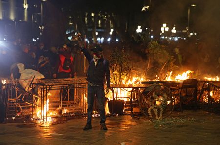 TBILISI (Reuters) -Georgian prosecutors on Monday charged five opposition figures with attempting to overthrow the government, after protests on Saturday culminated in clashes between police and demonstrators in the capital of the South Caucasus country of 3.7 million.