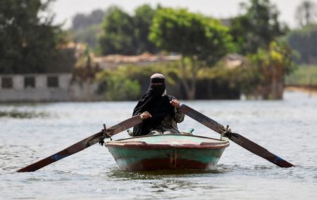 CAIRO (Reuters) -Rising Nile waters inundated homes and fields in northern Egypt over the weekend, forcing residents to move by boat and intensifying a war of words between Cairo and Addis Ababa over whether Ethiopia’s giant Nile dam has worsened seasonal floods.