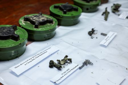 During an August visit to frontline Thai military units, the news agency took photos of shrapnel that service members said they recovered from those incidents, as well as images of dozens of intact mines Thailand said were retrieved from along the border area.