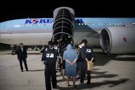 SEOUL (Reuters) -A group of 64 South Koreans detained in Cambodia over alleged online scam operations returned home on Saturday with most expected to face investigation, South Korean authorities said.