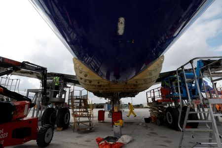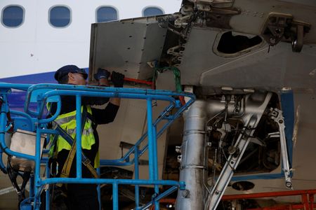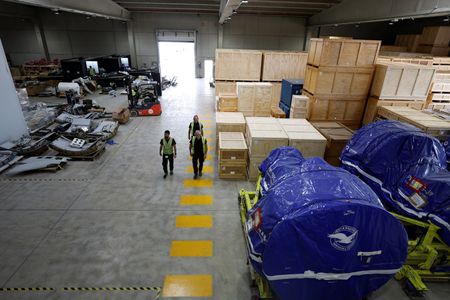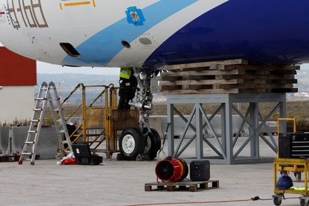 CASTELLON DE LA PLANA, Spain (Reuters) -At Castellon airport in eastern Spain, workers in hazmat suits wriggle through hatches of a nearly new Airbus jet, stripping out parts as if gutting a mechanical whale.