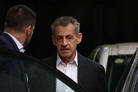 PARIS (Reuters) -Former French President Nicolas Sarkozy left his home in Paris hand in hand with his wife Carla Bruni on Tuesday morning to go to the capital’s La Sante prison to start a five-year prison term.