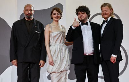 LOS ANGELES (Reuters) -Emma Stone was proud to say she did not break any bones while filming the absurdist comedy sci-fi film “Bugonia.”