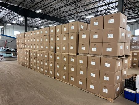 Hundreds of cardboard boxes of dried ginseng root, were stacked six rows high on wooden pallets in the center of the Hsu Ginseng Enterprises warehouse during an August visit.