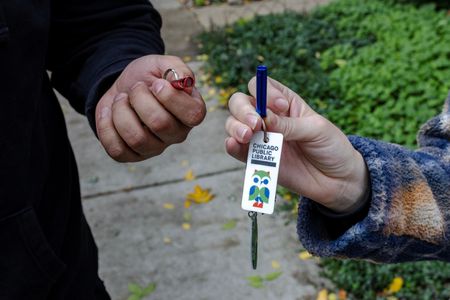 CHICAGO (Reuters) -As the shrill sound of whistles echoed through a parking garage in Chicago’s North Side on Tuesday, two people flung their car doors open, ducked inside and shrank down into their seats.