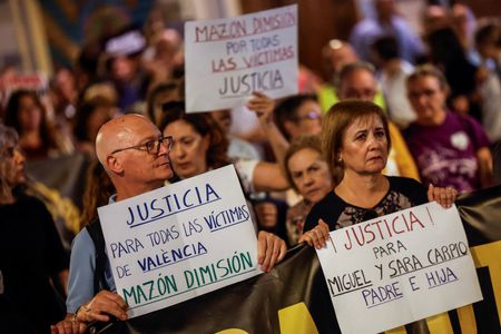 VALENCIA (Reuters) -Tens of thousands of people demonstrated in the eastern Spanish city of Valencia on Saturday and called for conservative regional leader Carlos Mazon to resign over his handling of flash floods that killed 229 people a year ago.