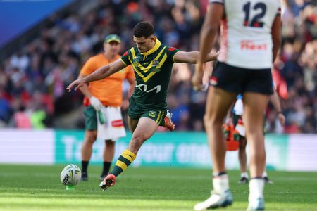 Two tries for the sport’s golden boy Reece Walsh and two for the impressive Angus Crichton had the Kangaroos cruising at 26-0 before Daryl Clarke’s late consolation gave England something to cling to ahead of next week’s second test at Premier League soccer club Everton’s ground.