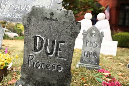 There are headstones – purchased on Amazon and hand-painted by Breslin – for “USAID,” and “research for health and science,” among others.