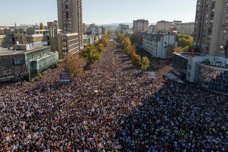 NOVI SAD, Serbia (Reuters) -Tens of thousands of protesters poured into Serbia’s second city on Saturday a year after a railway station roof collapse that killed 16 people, unleashing discontent over alleged corruption and a lack of accountability many blame for the disaster.