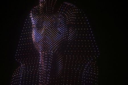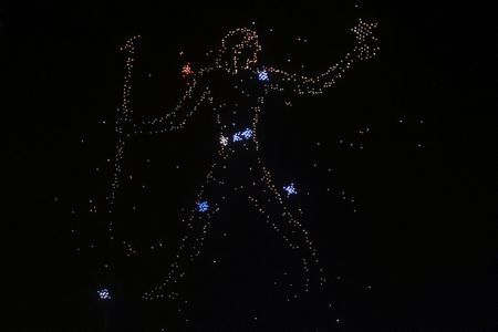 They were accompanied by Egyptian pop stars and an international orchestra decked out in white beneath a sky lit with lasers, fireworks and hovering lights that formed into moving hieroglyphics.