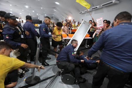 BELEM, Brazil (Reuters) -Dozens of Indigenous protesters forced their way into the COP30 climate summit venue on Tuesday and clashed with security guards at the entrance to demand climate action and forest protection.