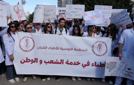 TUNIS (Reuters) -Thousands of young doctors went on strike across Tunisia on Wednesday to demand higher pay and warn of an impending collapse of the health system, part of a broader wave of social unrest convulsing the country.