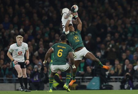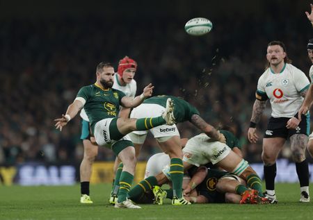 DUBLIN (Reuters) -South Africa continued their steamrolling November tour with a 24-13 win over an ill-disciplined Ireland who played part of the game with 12 men after suffering one 20-minute red card and three yellows in the first half alone on Saturday.