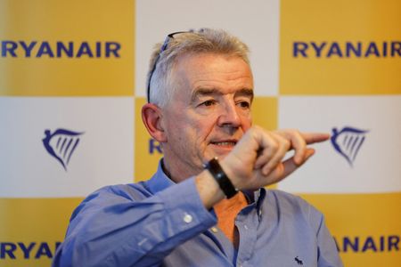 VIENNA (Reuters) -Budget airline Ryanair’s bookings for December, including the important Christmas period, are slightly ahead of where they were a year ago, with around 40% of seats remaining to be sold until the end of this year, CEO Michael O’Leary said on Tuesday.