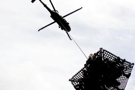 At another hospital, an army helicopter evacuated a critically ill elderly woman, who was surrounded by medical staff on the aircraft then wheeled away from the rooftop helipad of another facility, according to a handout video.