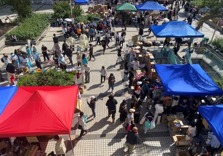 They formed teams to collect, transport and distribute goods in round-the-clock shifts and have set up a sprawling support camp for displaced residents beside a shopping mall across from the fire-damaged Wang Fuk complex.
